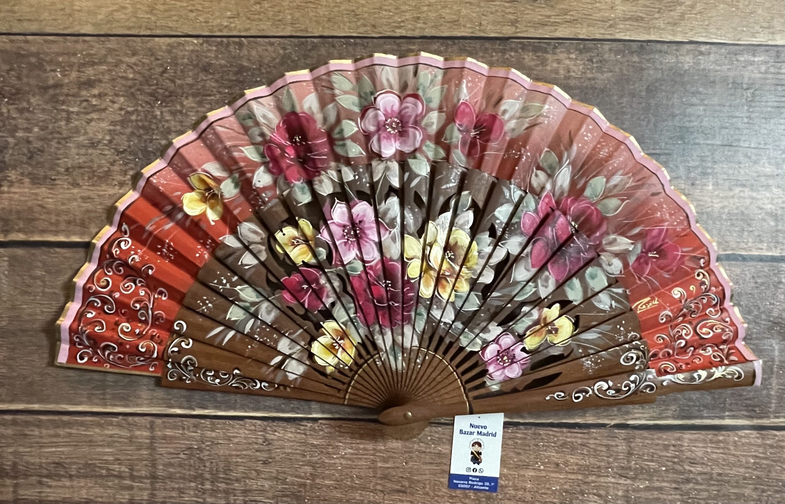 Se entrega el abanico en caja de cartón y funda de algodón.Precioso abanico pintado y realizado a mano por artesanos de la comunidad Valenciana.